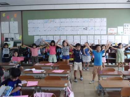 「せんせい,ビデオつけて!」と毎日リクエストしてくるほど,1年生は休み時間もダンスの練習を頑張っています。