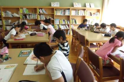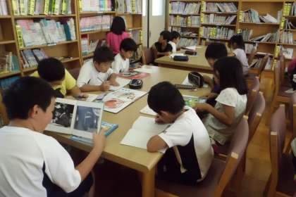 今日は,夏休み中にリニューアルした第2図書室で,調べ学習をしました。