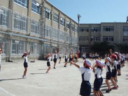 今日は1・2時間目に全校で運動会練習をしました。