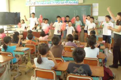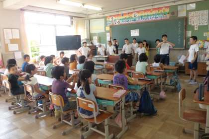 今日のおはようタイムでは,応援団が教室に来て応援を教えてくれました。中庭まで響く力強い声で,どの組も競い合うように声を出していました。「先生,朝から汗かいたよ!」と爽やかな笑顔で報告してくれました。
