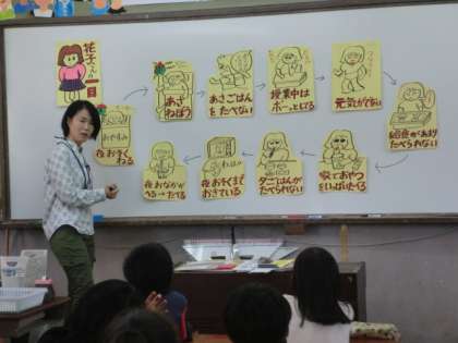 19日(木)の4時間目,栄養教諭の深尾先生に