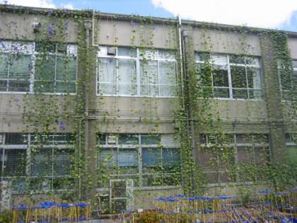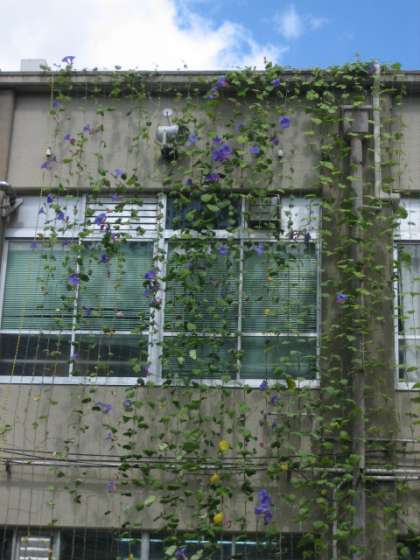 今年度も,北校舎の中庭に面する南側に「緑のカーテン」を育てています。