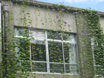 運動会にお越しの際には,緑のカーテンのアサガオをご覧ください。