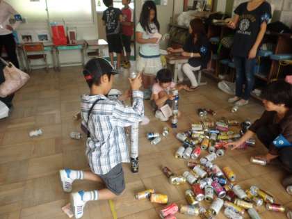 お次は,「缶つり」「缶つみ」「豆つかみ」コーナー。