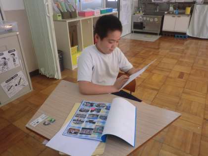 前期の最終日に前期の出来事や自分の行動をふりかえりました。4月からの思い出を写真を見ながらふりかえり,「あ〜,これしんどかったなあ。」「これがんばったなあ。」などとつぶやいていました。いろいろなことにチャレンジし,よく頑張りましたね♪