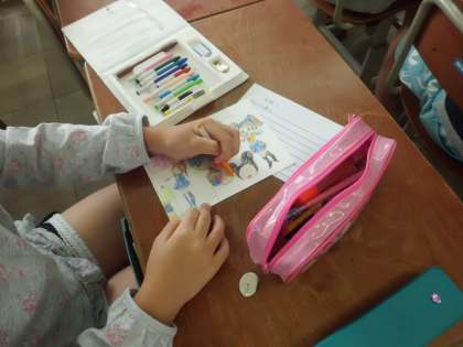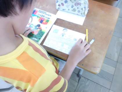 10月30日に多世代交流があります。龍谷大学に行き,大学生や地域の方と交流をします。その時に,自分の夢と地域の好きなところを発表します。そのために,今日は,絵と言葉を考えました。様々な夢や地域の好きなところがあり,交流会が楽しみです。