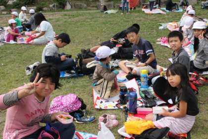 全校で皇子が丘公園へ行きました。班のメンバーと協力してオリエンテーリングをしたり,お弁当を食べたり,遊んだり・・・とても楽しい1日でした。