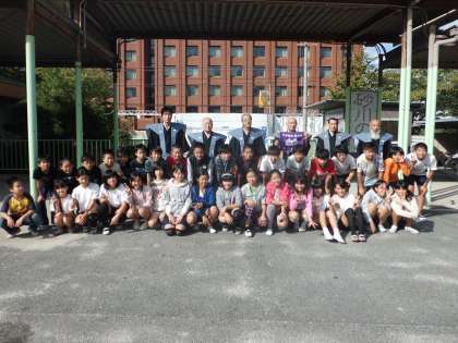 今日は,時代祭見学に行きました。砂川学区からも,時代祭に参加されている方が数名おられ,出発前に一緒に写真を撮っていただきました。