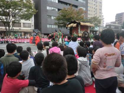 牛車がやってきました。車輪の大きさは大人の背丈よりも大きかったです。大迫力!