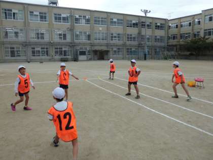 エンドボールの学習も4回目になり,どんどん上達してきました。試合が始まる前は,考えた作戦がうまくいくように練習をしています。練習通りいくといいのですが。