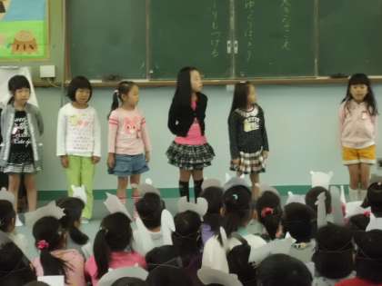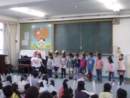 動きをつけたり,ゆっくりセリフを言ったり,子どもたちも試行錯誤しながら練習に励んでいます。