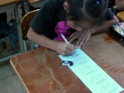 友達のよいところやすきなところを紙に書き,友達に渡しました。