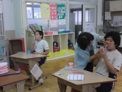 週に1回,佐々木先生による「歯みがき教室」の日でした。磨く順番も少しずつ頭に入ってきたかな?