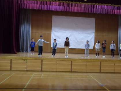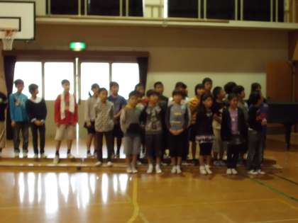 今までは,それぞれの役割ごとに練習をしてきましたが,今日はじめて全員が舞台に上がって通して練習をしました。
