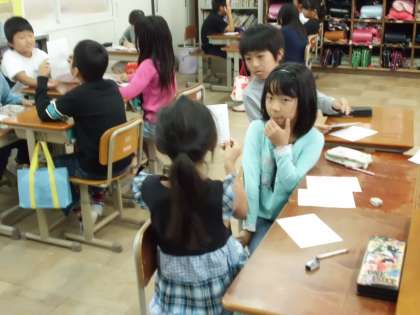 お友達と発表し合って,「もっと前見て話したらいいと思うよ。」などとアドバイスしてあげている姿が見られました。