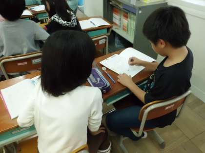 算数の学習で,ペアで話し合っている様子です。