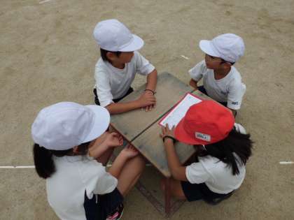 まねっこかけあしの途中で「作戦タイム」をとっています。