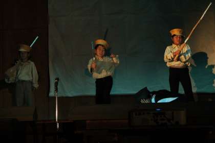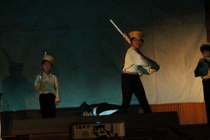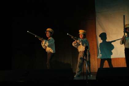 戦争当時の軍人を思い描き,演技を工夫して頑張りました。