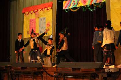 まず,2組から発表をしました。2組の劇のタイトルは,「レンタル夢ショップ」です。