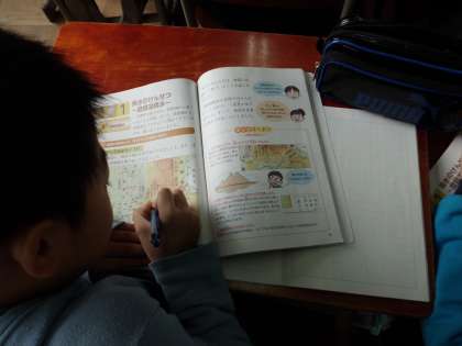 今日は,地図に,疏水の流れを赤で,ほかの川と琵琶湖を青でぬって,気付いたことを話し合いました。