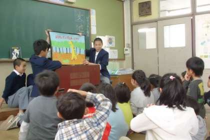 最後には,大きな大きな紙芝居を読んでくれました。タイトルは「あなたをずっとずっとあいしてる」。大人もジーンとするような切なく深いお話です。なんと!中学生の手作りで,全部切り絵でできています。かなりの時間と労力を費やして作ってくださったようです。砂川小学校に寄付していただいたので,大事に大事に読ませていただきます。ありがとうございました。