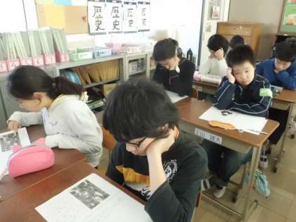 今日は,「鑑真和上」というお話を読んで考えました。いつも道徳の話は読み聞かせをしているのですが,今日は鑑真の生い立ちをじっくりと読んでほしかったため,話を全員に配り,黙読させました。