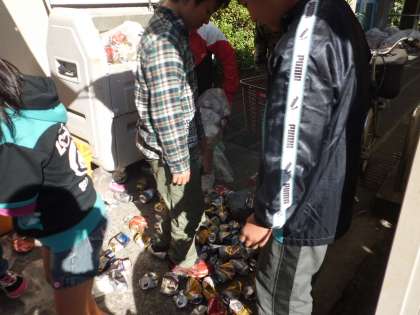 今日は6年生が空き缶ふみを担当しました。大分たまっていた空き缶もすっきりしました。