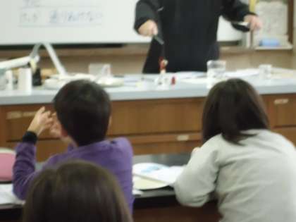 まず予想をしました。空気と水についてすでに実験しているので,あたためると体積が増え,冷やすと体積が減ると,ほとんどの人が予想していました。