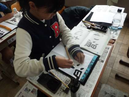 今日は「温かい心」を書きました。点画のつながりを意識して筆を運ぶことに気を付けながら取り組みました。