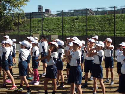 みんなで準備体操をした後は,班ごとにかけあしをしました。