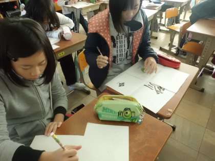 卒業アルバムの表紙の絵を描きました。それぞれオリジナルの表紙のアルバムが出来上がります。出来上がりが楽しみです。