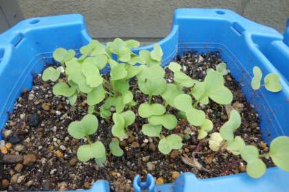 植木鉢に植えた種が芽を出し,すくすく育っています。土日の間にまたぐっと大きくなった気がします。