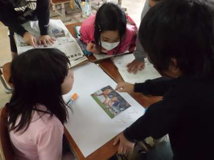 グループごとに,新聞からアップの写真とルーズの写真を選びました。