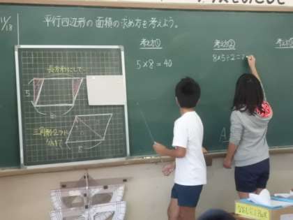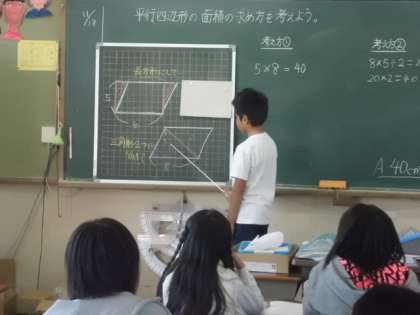 今日は,平行四辺形の面積の求め方を考えました。