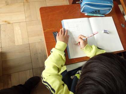 ノートに筆算を丁寧に写して計算をしています。