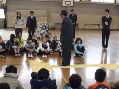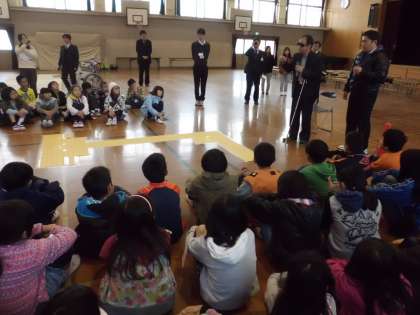 2種類の点字ブロックの意味や,どのようにたどっていくかなどを教えていただきました。