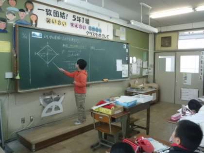 三角形の面積の公式を使って解く考えでも,3つのやり方があることに気付いたり,公式をみんなで考えたりすることができました。どうしてその公式になるのかについては,いろいろな意見が出て楽しい学習時間になりました。