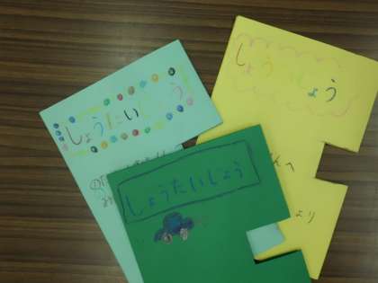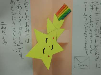 「今度は1年生をゲームランドに招待しよう!」ということで,今日は『招待状』を作りました。国語科「しかけカードのつくり方」で学んだことを生かしながら,1年生に喜んでもらおうと一生懸命に作りました。