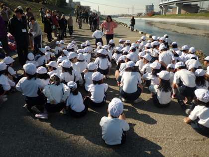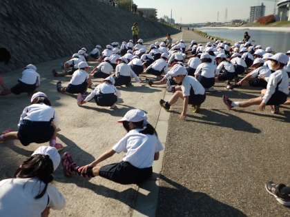 まず,約束をしっかりきいた後,十分に準備体操をして体を温めました。