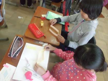 実際に厚紙で平行四辺形を作りながら確認しました。