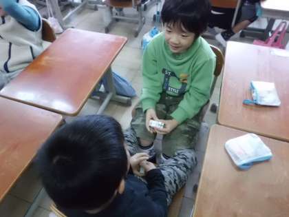 お友達が出した問題を,頭の中で一生懸命考えて早く答えます。
