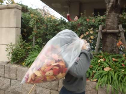 校門前に落ち葉がたくさんあったので,朝休みに集めました。