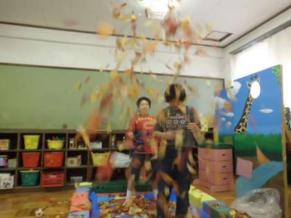 集めた葉っぱで「葉っぱシャワー」をしたり,葉っぱに埋まったり・・・秋を満喫しました♪