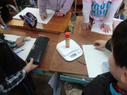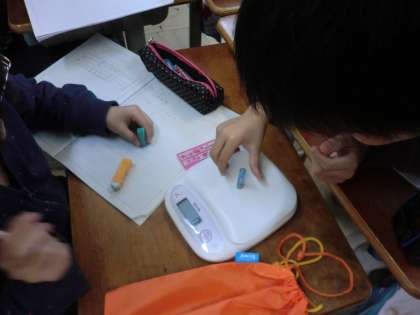 見た感じよりも軽かったり,重たかったりで「え〜〜っ」と驚きの声が上げながら,楽しく調べられたようです。
