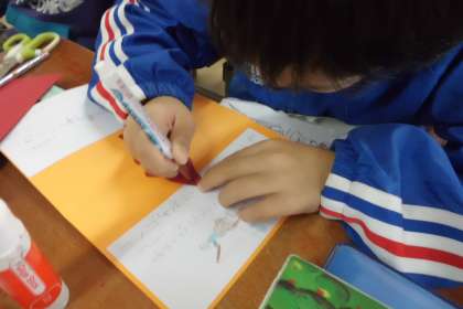 国語「しかけカードの作り方」では,1年生に渡すゲームランドへの招待状作りをしました。1年生が読みやすいように,喜んでくれるように,心をこめて作っていました。