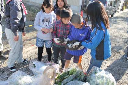 みんなで自分のゴミを確認しあっています。