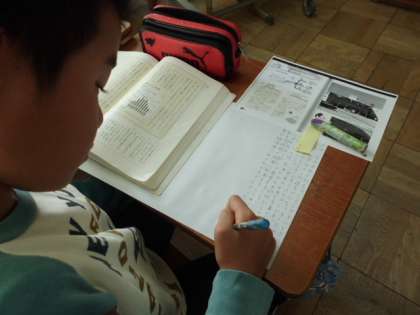 今日は,事前に図書室で見つけておいたそれぞれの資料をもとに,意見文を書きました。