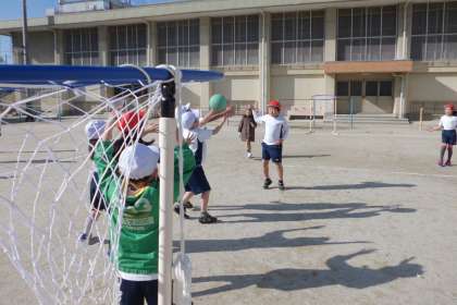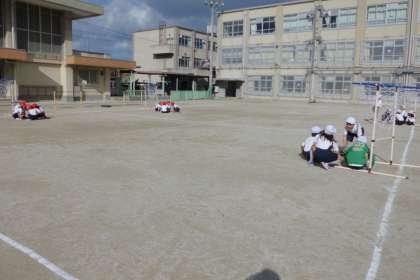 体育「パスゲーム」では,だんだんボールや敵の動きを見て動けるようになってきました。「いつもパスされる子の前に回ってじゃまをしよう。」「得点を入れられそうになったらゴール前をみんなでかためよう。」などと,作戦も具体的になってきました。