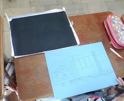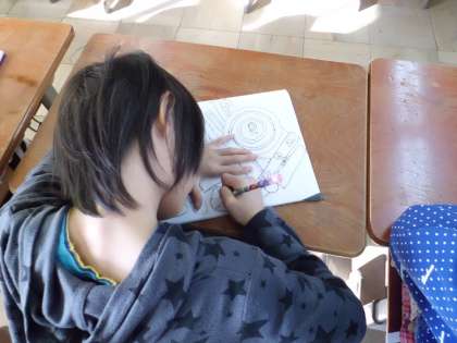 写し終わった後,カーボン紙をどけると,絵がきれいにうつっているのを見て子どもたちはとても喜んでいました。