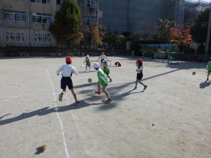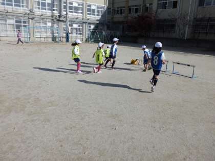 マラソンの練習があり,中断していたボールけりゲームを再開しました。